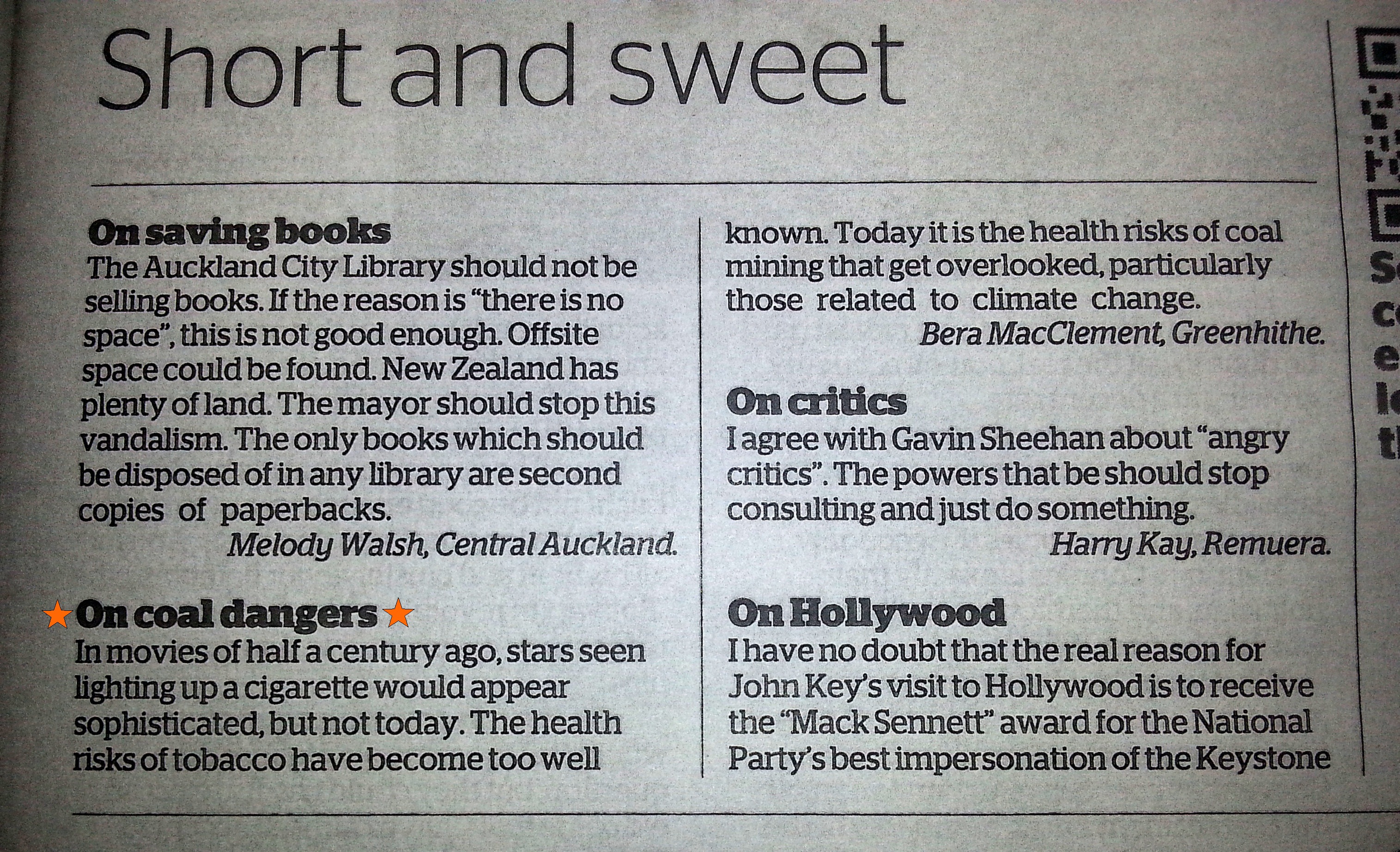 The following were all published in the NZ Herald’s letters to the editor page on 4 October 2012.