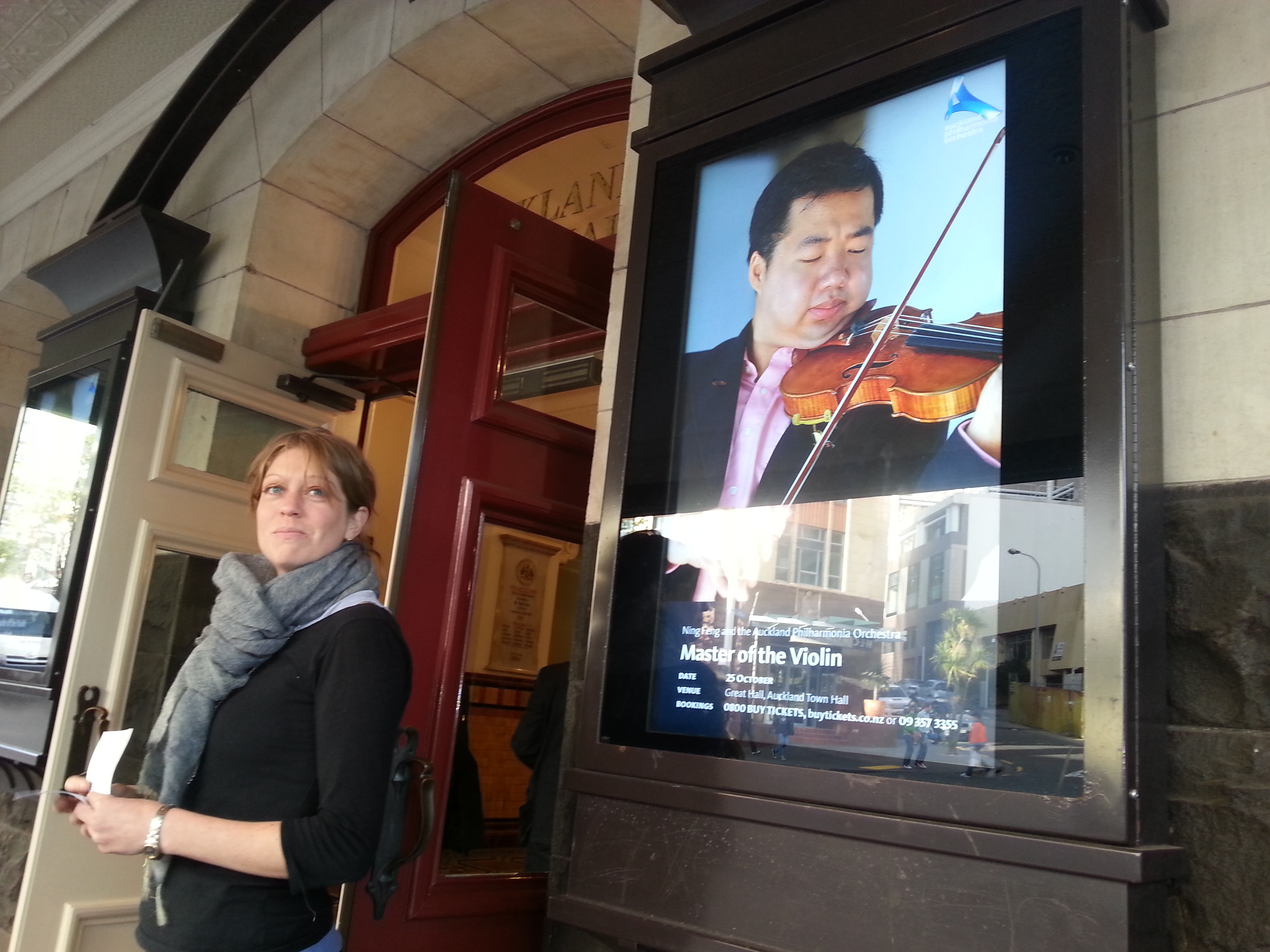 A dozen members of Auckland Coal Action were at the Town Hall again this evening to protest Solid Energy’s sponsorship of the New Zealand Symphony Orchestra’s Forbidden Love. Just like all those dirty tobacco companies, coal company Solid Energy is promoting itself as one of the ‘good guys’ through association with our national orchestra.