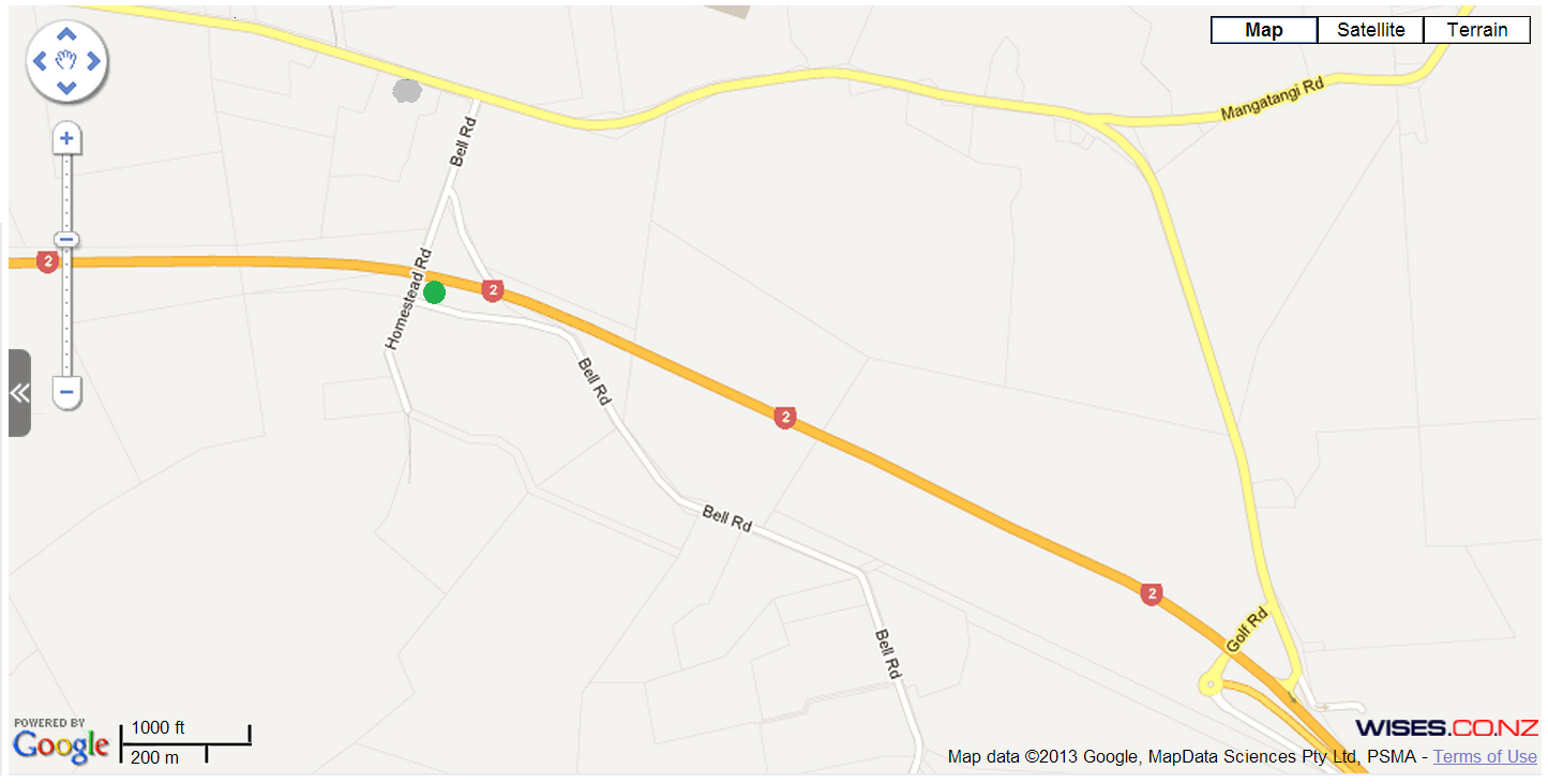 Coming from Auckland you will need to take the Mangatawhiri exit from State Highway 2 onto Mangatawhiri Road (incorrectly shown as Mangatangi Rd on Google Maps).