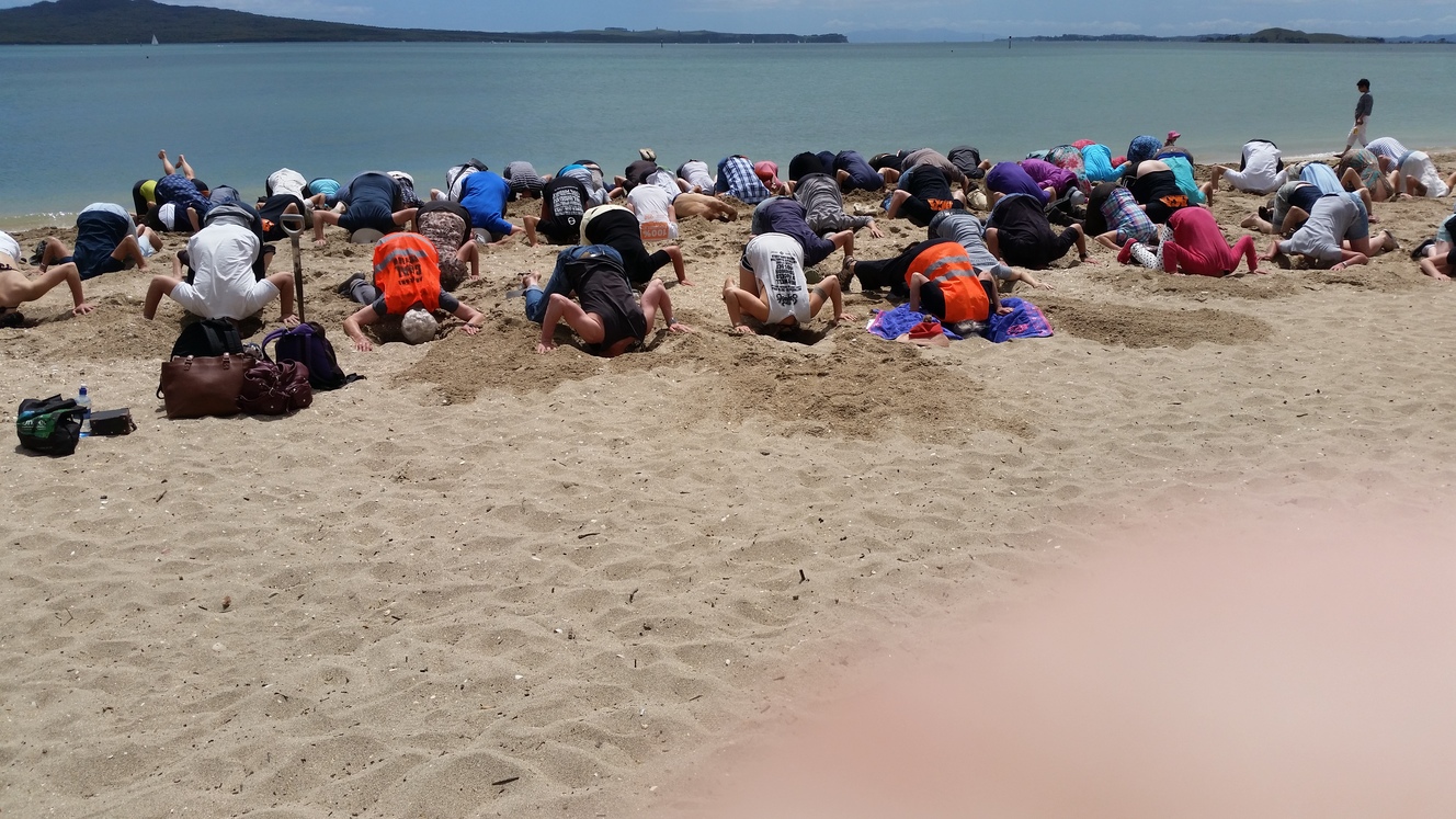 Photos from Sunday’s “Heads in the Sand” Protest with 350.org.nz